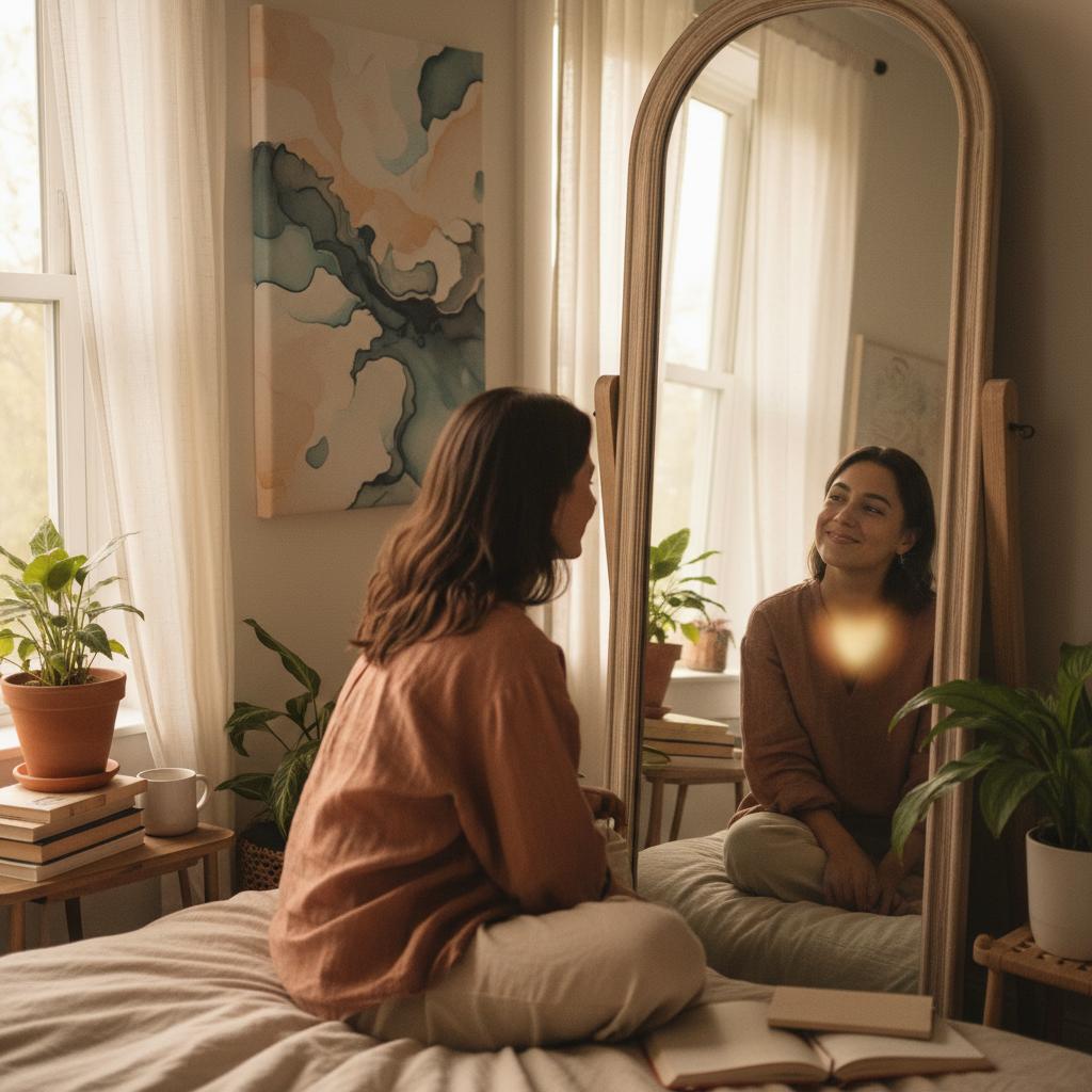 - Praca z lustrem – patrz na siebie z ciekawością, nie krytyką; dostrzeż to, co wyjątkowe.