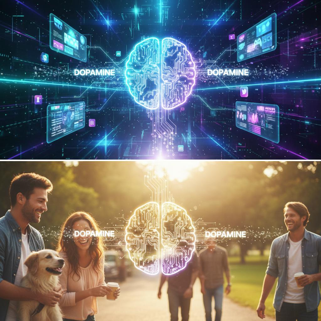 Spójrzmy na codzienne przykłady: Poranne przeglądanie Instagrama daje szybki dopaminowy strzał, ale z czasem tłumi motywację do trudniejszych działań. Odkładanie pracy domowej? To gra dopaminowa mózgu, który szuka łatwej nagrody. Nawet wieczorne objadanie się to w efekcie pogoń za kolejnym zastrzykiem przyjemności. Warto zauważyć, że dopamina nie jest naszym wrogiem – to my decydujemy, czy pracuje dla nas, czy przeciwko nam.
