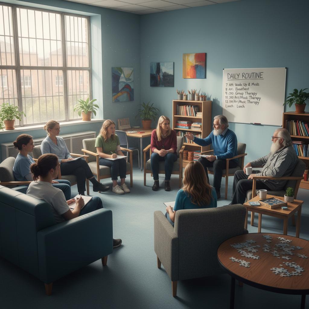 Codzienność na oddziale psychiatrycznym jest zorganizowana według żelaznego harmonogramu. Pobudka wcześnie rano, posiłki o stałych porach, cykliczne zajęcia terapeutyczne i kontrole lekarskie. Nie ma miejsca na chaos – każdy dzień to powtarzalna sekwencja zdarzeń, która ma przywrócić poczucie bezpieczeństwa.