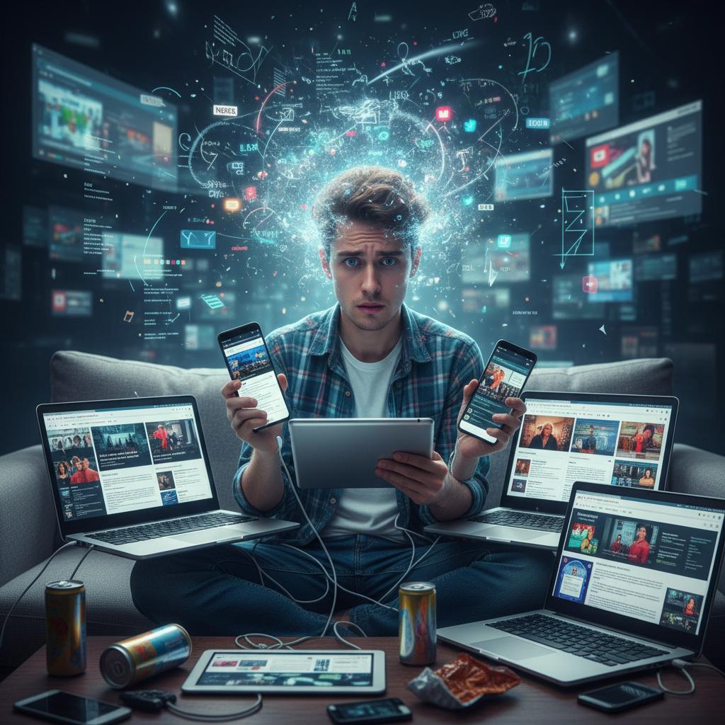 - Permanentny stres: Użytkownik łączący się z licznymi kanałami raportuje wyższy poziom lęku i zmęczenia.