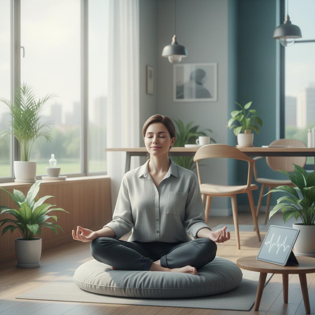 Obrazek oddaje współczesne podejście do zarządzania stresem przy pomocy technologii.