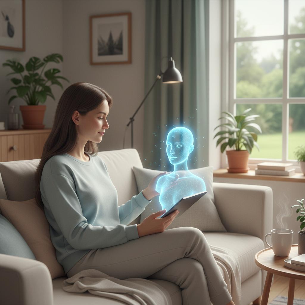 Obrazek ukazuje wykorzystanie AI w praktyce – szybkie, dostępne wsparcie emocjonalne.