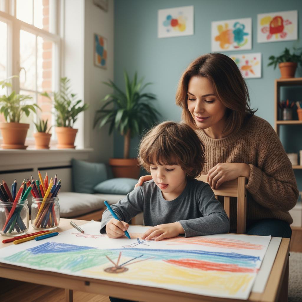 - Wspólna praca z rodzicem: Tworzenie rysunku relacji rodzinnych, który staje się punktem wyjścia do rozmowy o potrzebach i granicach.