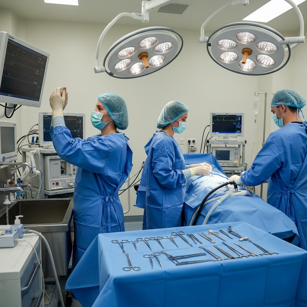 Chirurgiczny zespół przygotowujący się do usunięcia guza przysadki – klasyka leczenia zespołu Cushinga.